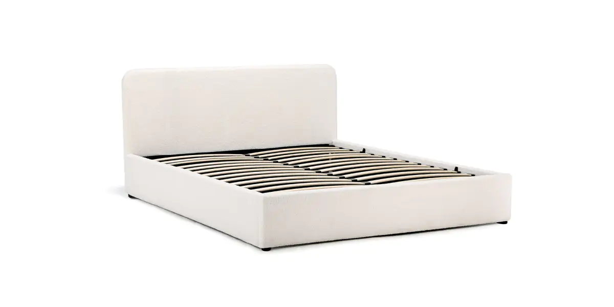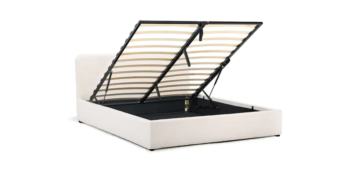 Díky výklopnému lamelovému roštu nabízí velkorysý úložný prostor, ideální pro ložní prádlo, deky nebo sezónní věci.