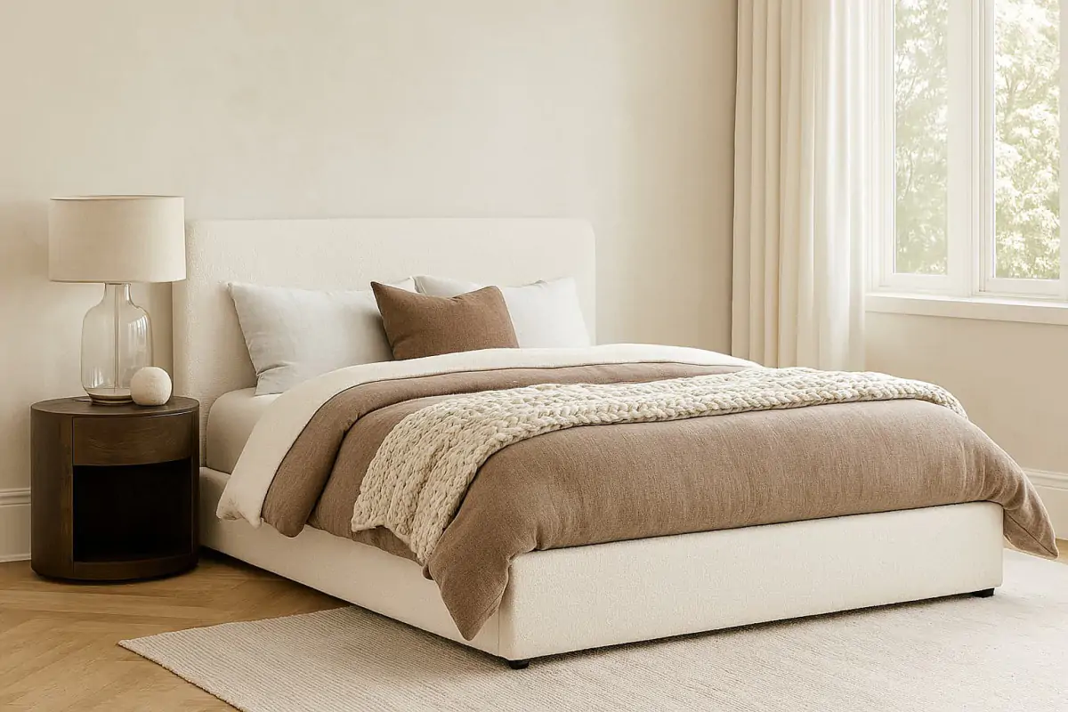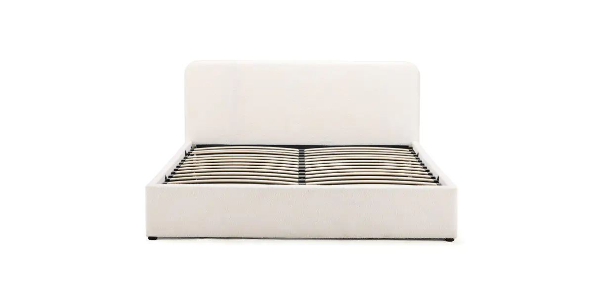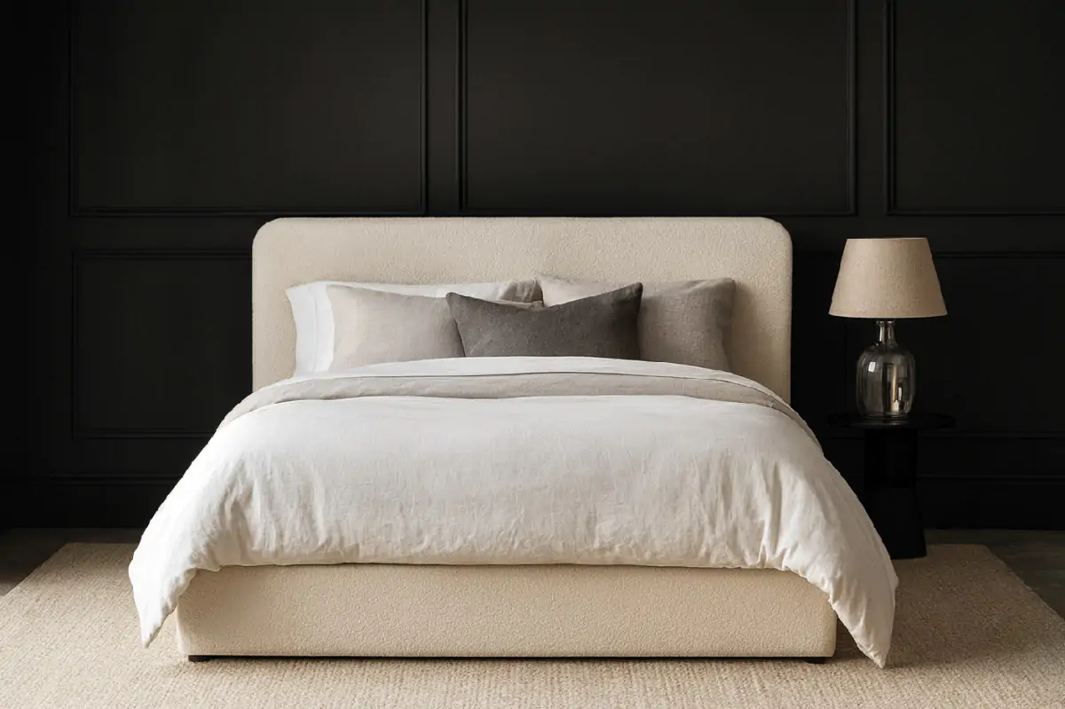 Elegantní čalounění látkou bouclé v bílá barvě se snadno kombinuje s jakýmkoliv stylem interiéru – od moderního po skandinávský.