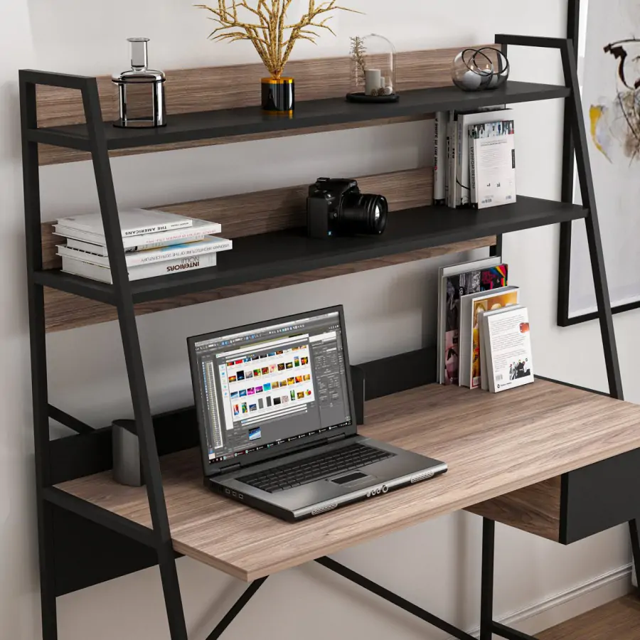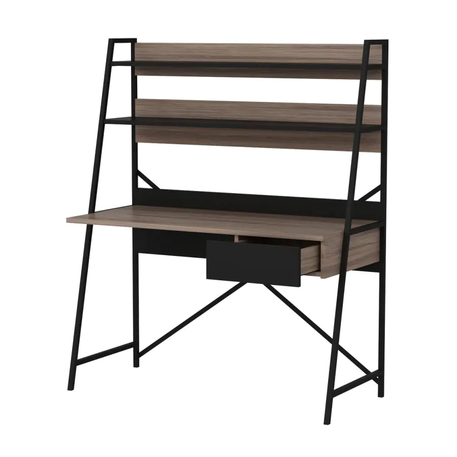 Psací stůl kombinuje moderní industriální styl s praktičností, což z něj činí perfektní doplněk do dětského pokoje i pracovny. S vysokou konstrukcí, zásuvkou a regálkem nabízí dostatek úložného prostoru a pohodlné pracovní prostředí. Jeho kombinace materiálů a barev dodává interiéru jedinečný vzhled.
