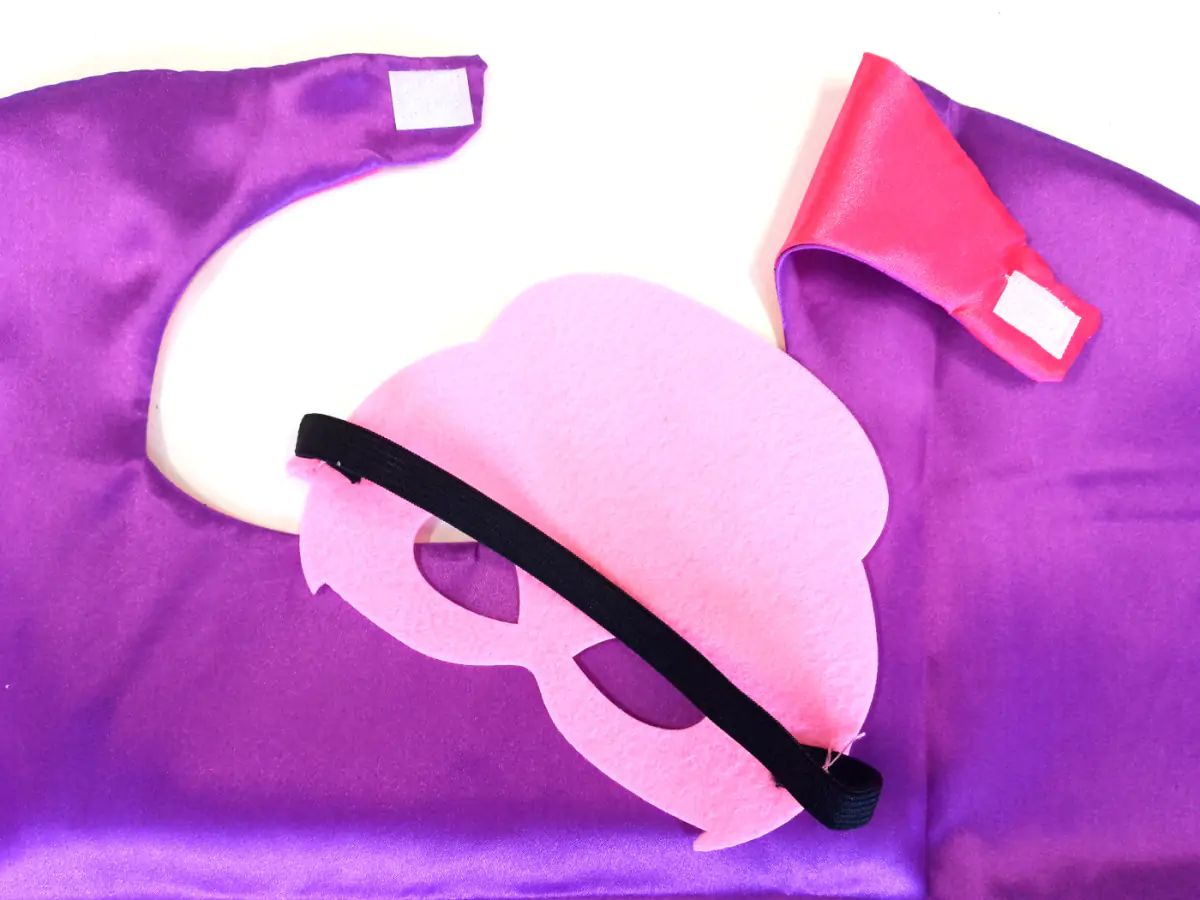 Zapínání na suchý zip zajišťuje snadné oblékání a svlékání, takže se dítě dokáže převléknout i samo bez pomoci rodičů. Maska je vyrobená z měkké plsti a díky elastické gumičce dobře sedí na obličeji a netlačí.