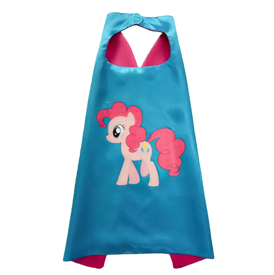 Hlavní hvězdou kostýmu je veselá a energická Pinkie Pie, která zaručeně rozzáří každý karneval či oslavu. Součástí balení je modrý plášť s obrázkem poníka a ladící maska na obličej.