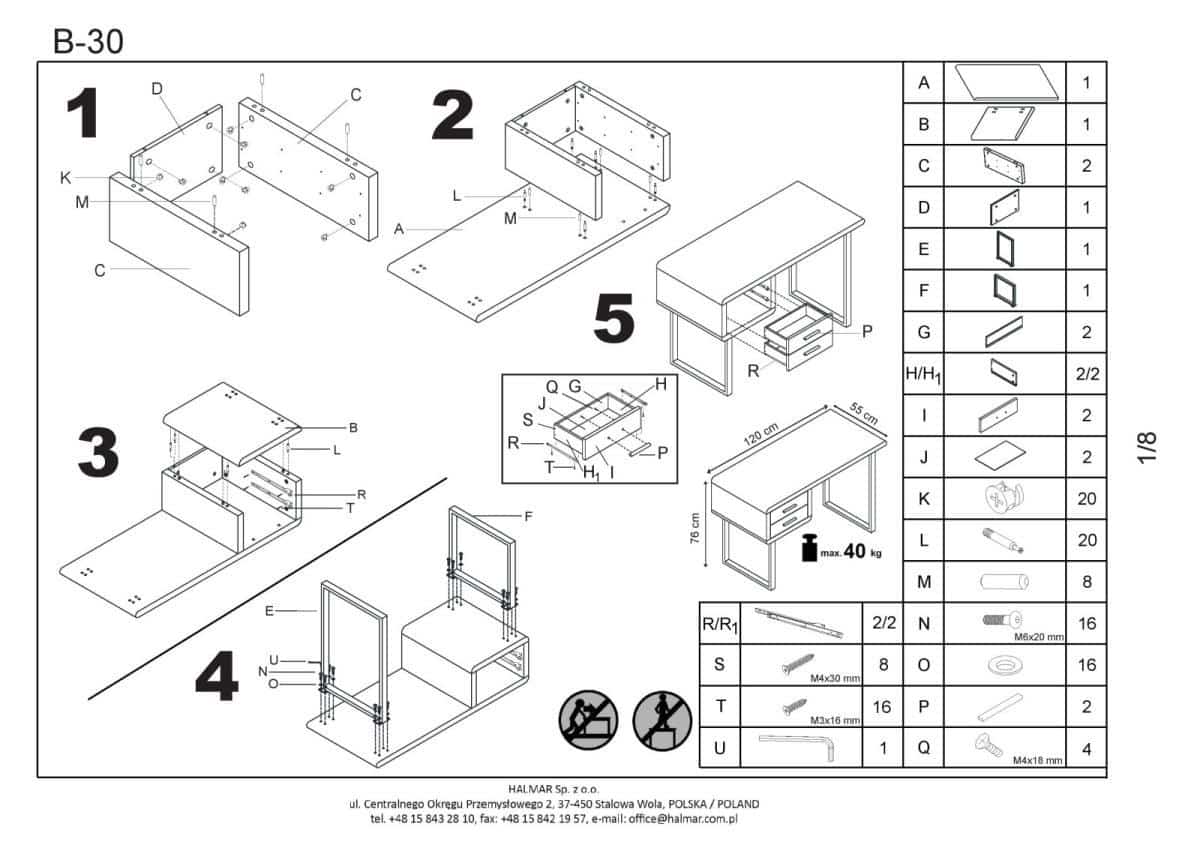 prosím o informaci ohledně hmotnosti stolu - Psací stůl B-30.