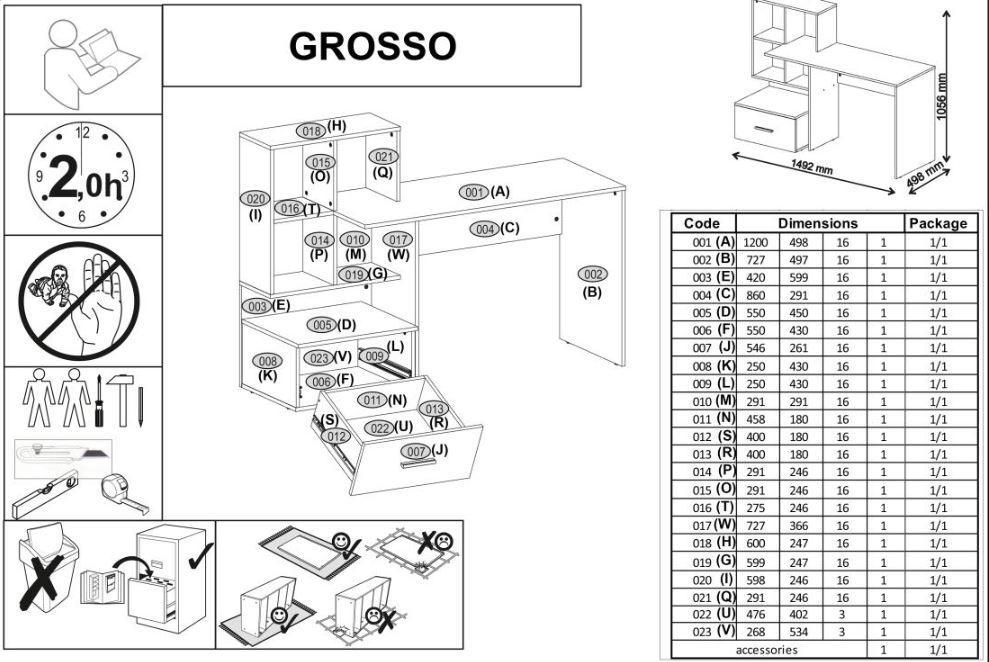 Psací stůl GROSSO je vhodný k zařízení dětských a studentských pokojů, obývacích pokojů, pracoven, apod.