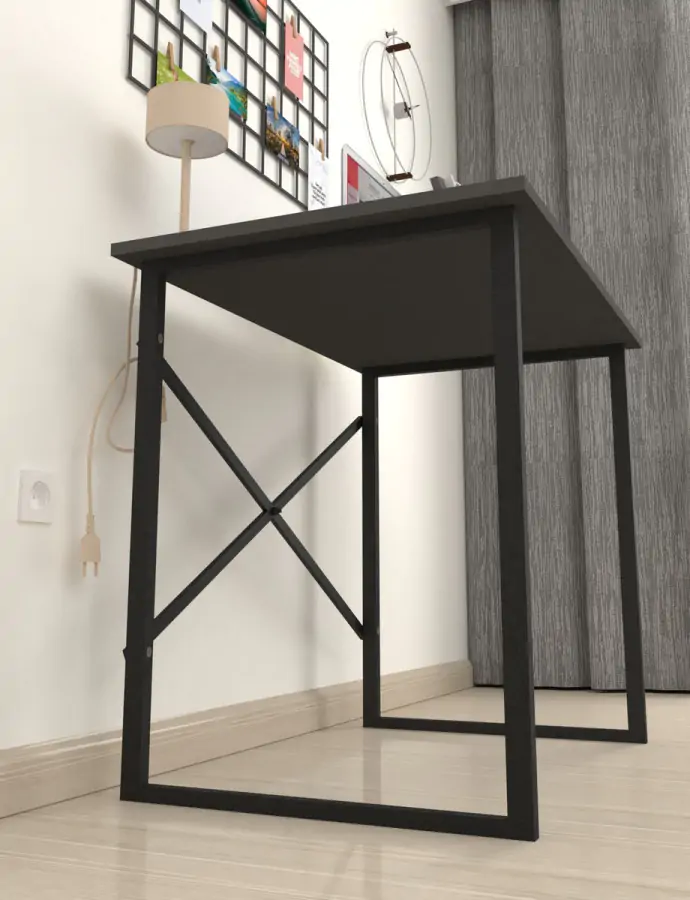 Stylový psací stůl ANGELA je z kovového rámu v matné černé barvě a pracovní deska je vyrobena z kvalitní LTD desky v barvě antracit.