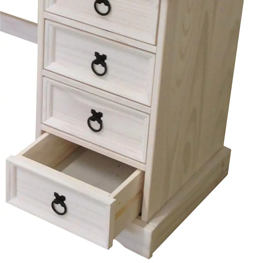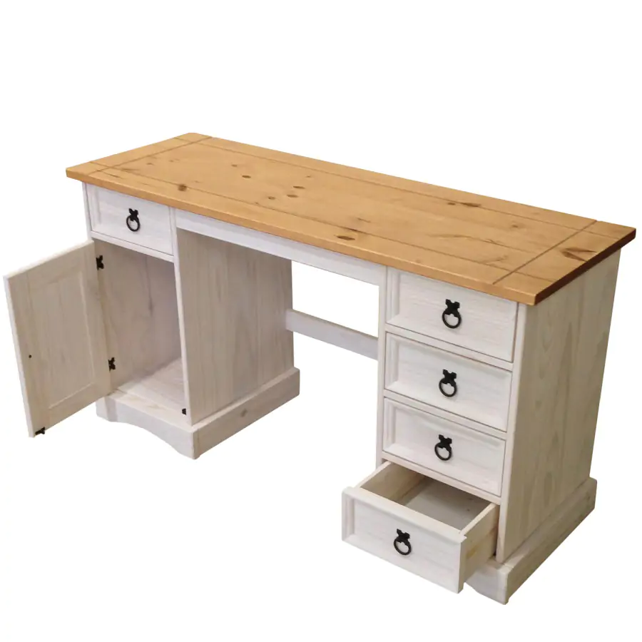 Prostorný psací stůl je vyroben z masivní borovice, voskovaná v bílém odstínu, horní deska masiv borovice voskovaná v medovém odstínu.