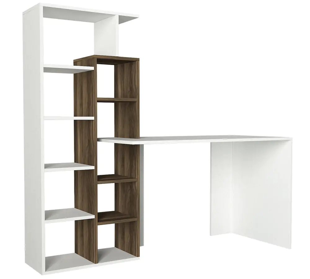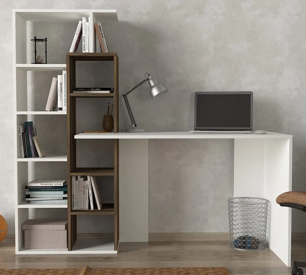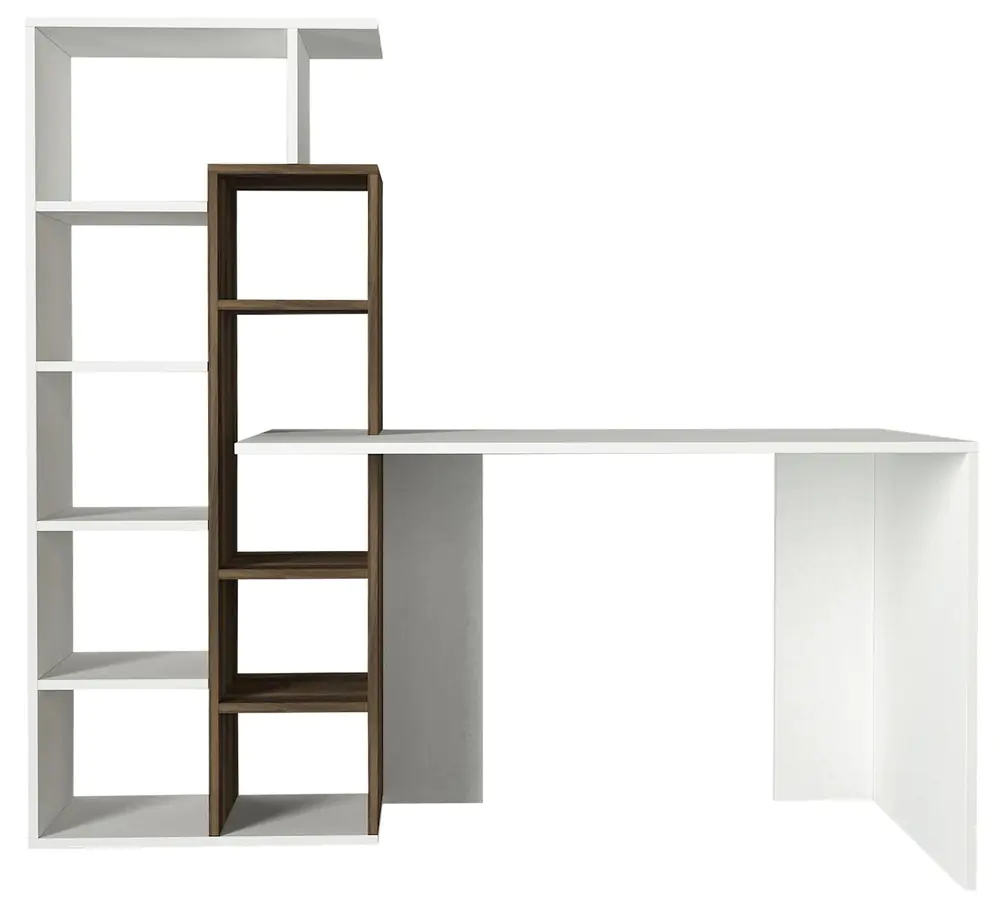 Psací stůl PARKES s regálem je vyroben z kvalitního lamina o tl.18 mm hraněné PVC páskou, odolného proti poškrábání v kombinaci barev matná bílá/vlašský ořech.
