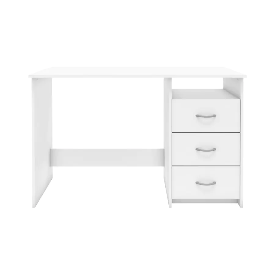 Provedení: Psací stůl v barevném provedení perleťově bílá je vyroben z laminované dřevotřísky. Stůl má 3 zásuvky, které obsahují pojezdy s kuličkovými ložisky a 1 polici (š/h/v) ...