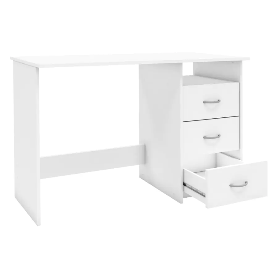 Psací stůl v barevném provedení perleťově bílá je vyroben z laminované dřevotřísky.