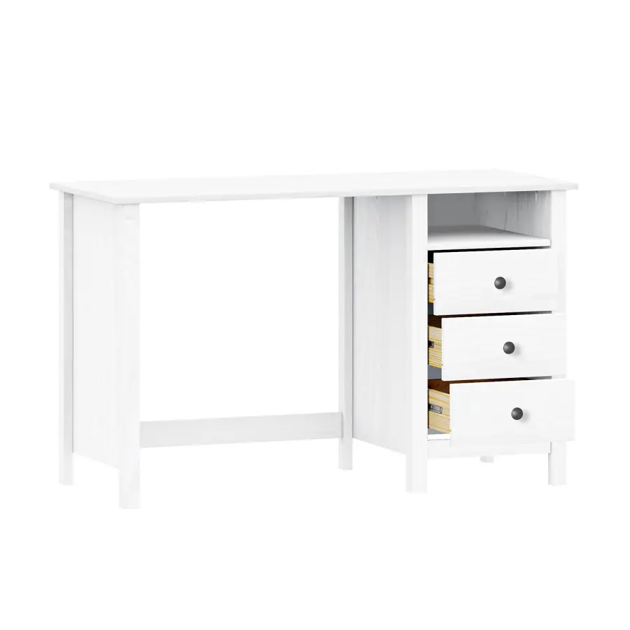 Psací stůl TORINO 8090B v bílém provedení je skvělou volbou, je totiž prostorný a má šikovně řešený úložný prostor. Velký stůl má pod deskou jednu otevřenou polici pro odložení věcí a poté tři zásuvky s kovovými pojezdy.