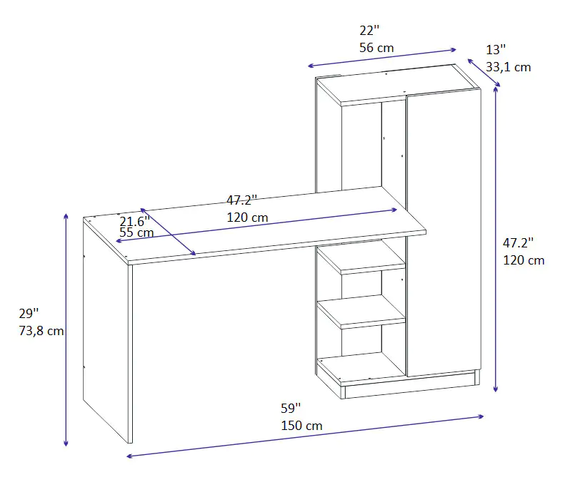 Psací stůl nabízí elegantní a praktické řešení pro práci, studium nebo organizaci vašeho prostoru. Díky svému vysokému designu s regálkem a skříňkou poskytuje dostatek úložného prostoru a usnadňuje udržování pořádku. Moderní vzhled a kvalitní zpracování zaručují, že stůl zapadne do každého interiéru.