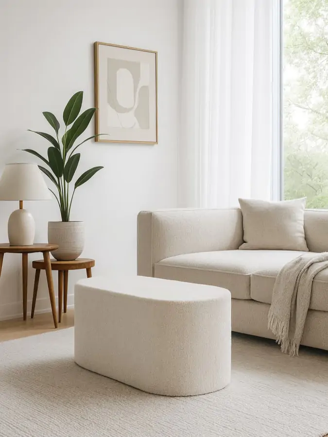 Elegantní oválný taburet ADAL přináší do vašeho interiéru jemnost, eleganci a styl. Je čalouněn moderní bouclé látkou, která je nejen na dotek mimořádně příjemná, ale zároveň působí útulně a luxusně. Díky oválnému tvaru a čistému designu se snadno kombinuje s různými styly nábytku – od minimalistického až po skandinávský. Perfektní jako doplněk k pohovce, křeslu nebo do ložnice – poslouží jako sedátko, podnožka i dekorativní prvek.
