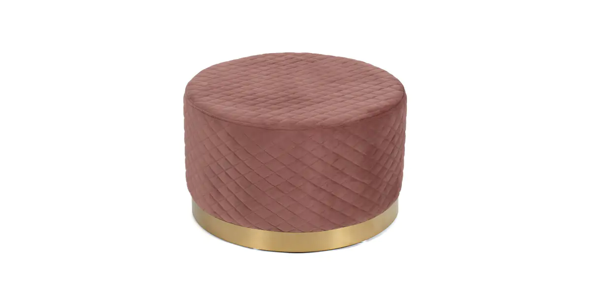 Elegantní taburet LUMI vnese do vašeho interiéru nádech luxusu. Jeho jemný sametový potah s dekorativním prošíváním působí elegantně a útulně, zatímco zlatý kovový prstenec ve spodní části dodává celku sofistikovaný vzhled.