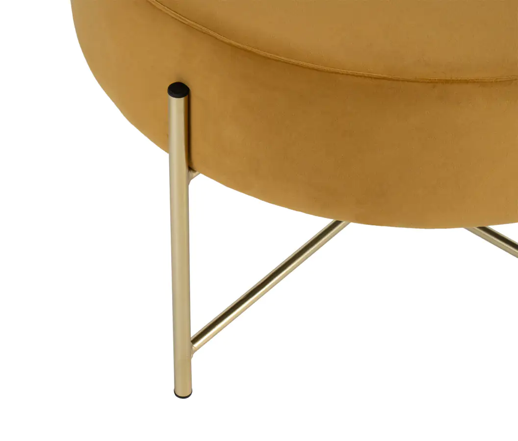 Elegantní kulatý taburet MORO je dokonalým spojením moderního designu a praktičnosti. Čalouněný jemným sametem působí luxusně a příjemně na dotek, zatímco stabilní kovová konstrukce ve zlatém odstínu dodává celé konstrukci nádech elegance a stylu.