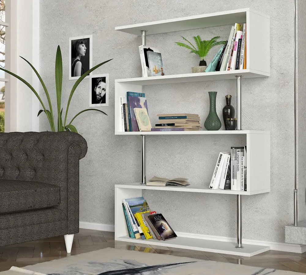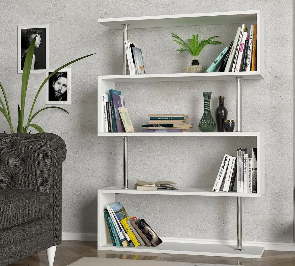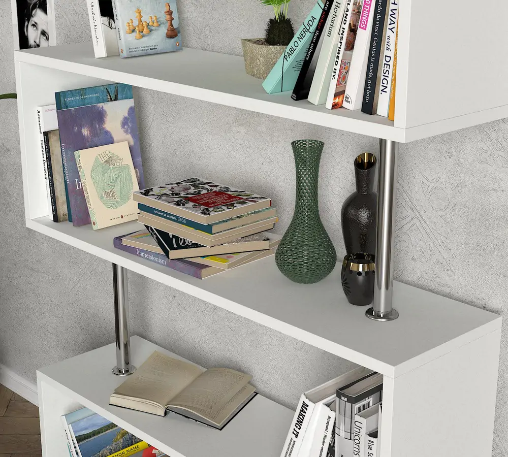 Regál BALSO je vyroben z kvalitního lamina o tl.18 mm hraněné PVC páskou, odolného proti poškrábání v barvě matná bílá v kombinaci s kovovými tyčemi.