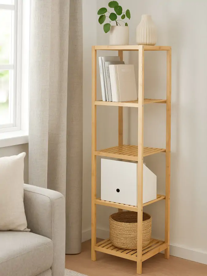 Víceúčelový regál BAMBI je praktickým řešením pro organizaci prostoru v domácnosti nebo v pracovním prostředí.