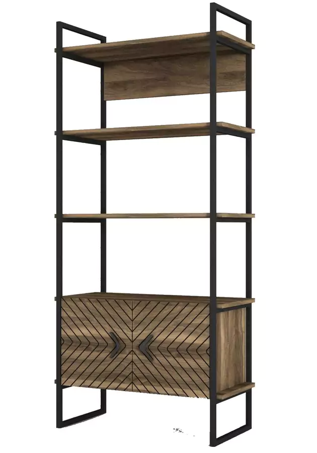 Regál GENET v kovovém rámu je vyroben z kvalitního lamina o tl.18 mm hraněné PVC páskou, odolného proti poškrábání v barvě vlašský ořech. Dodáváme v demontovaném stavu.