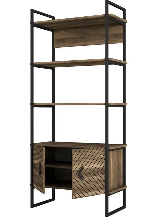 Regál GENET v kovovém rámu je vyroben z kvalitního lamina o tl.18 mm hraněné PVC páskou, odolného proti poškrábání v barvě vlašský ořech.