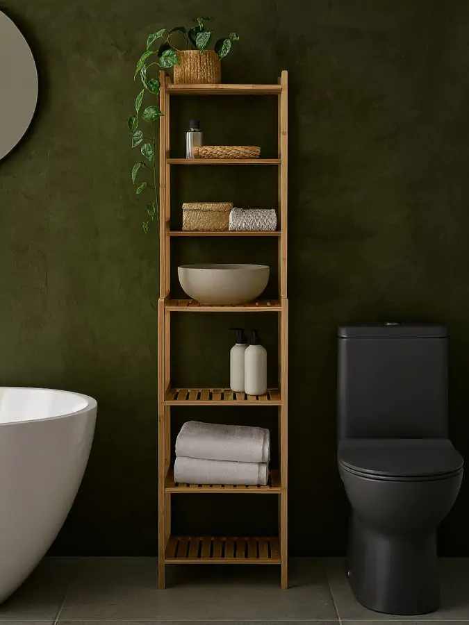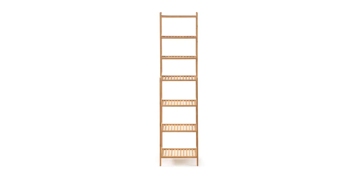 Praktický 7-policový bambusový regál LADRA nabízí přehledný úložný prostor a ozdobí interiér v koupelně, předsíni, kuchyni, ale také v obýváku.