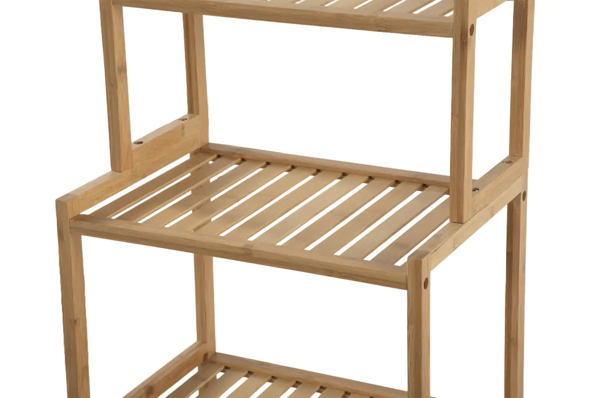 Vyroben z kvalitního a odolného bambusu. Otevřená konstrukce zajišťuje přehlednost a snadný přístup k věcem.