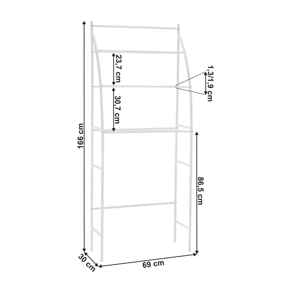 Regál nad pračku VIMERA je dokonalé řešení na využití volného prostoru koupelny, prádelny nebo toalety.