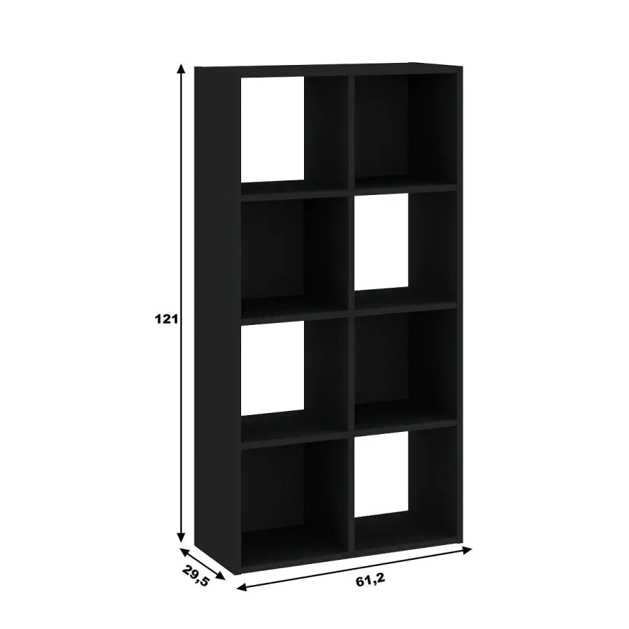 Vysoký regál CARINO s osmi přihrádkami je vyroben z kvalitní LTD desky nenáročné na údržbu, v barevném provedení černá. Dodáváme v demontovaném stavu. Doporučujeme připevnit ke zdi.
