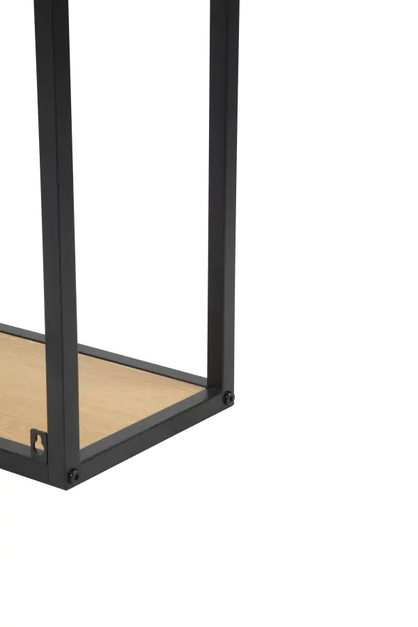 Praktický závěsný regál ARCANA s kovovým rámem a policemi z MDF v dekoru přírodního dřeva nabízí funkční úložný prostor s odlehčeným vzhledem.