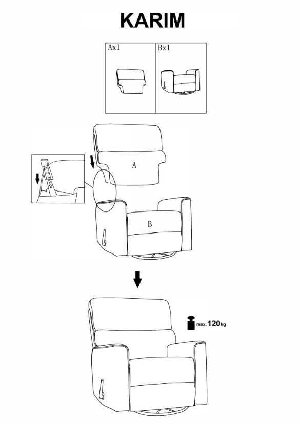 Relaxační polohovací křeslo KARIM s potahem z příjemné a odolné látky je ideální volbou pro váš obývací pokoj . rozměry: 85/100-167/103/50 cm polohovací křeslo s funkcí...