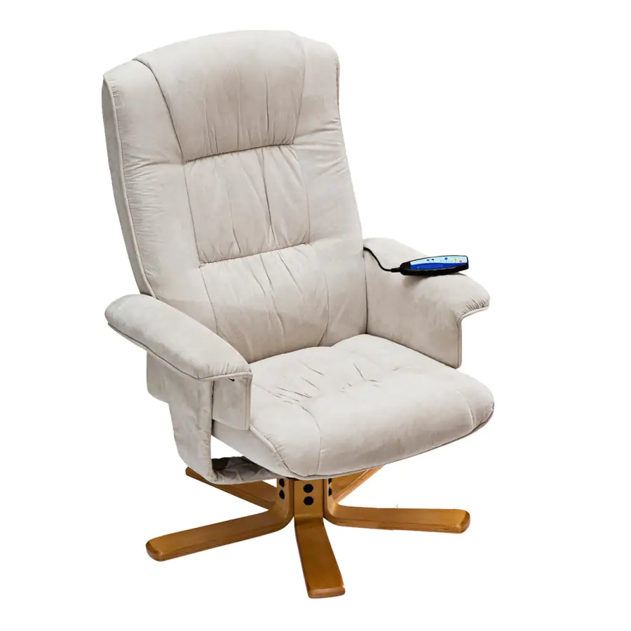 Relaxační křeslo je čalouněno potahem v imitaci broušené kůže, barevné provedení béžová. Elektrické ovládání, 5 masážních programů, 2 stupně intenzity, nastavení oblasti masáže (zádová nebo...