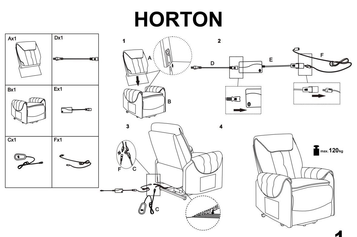 Elegantní relaxační křeslo HORTON je ideální volbou pro maximální pohodlí. rozměry: 80/97-158/105-90/52-53 cm elektrické polohování / funkce zvedání materiál: látka matný samet - MAVEL...
