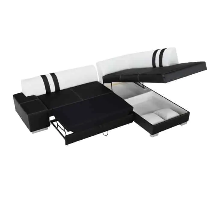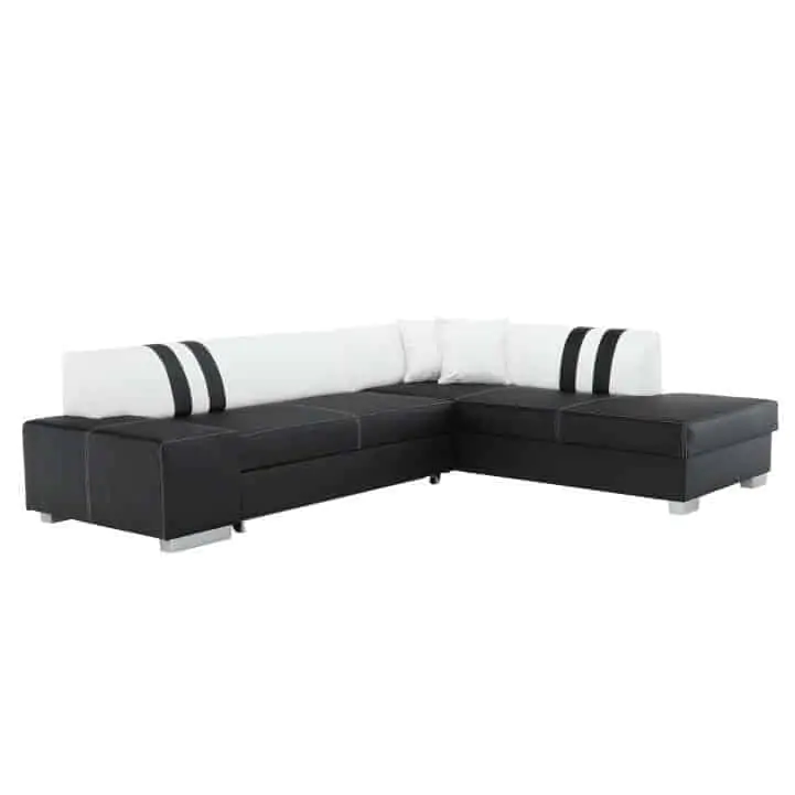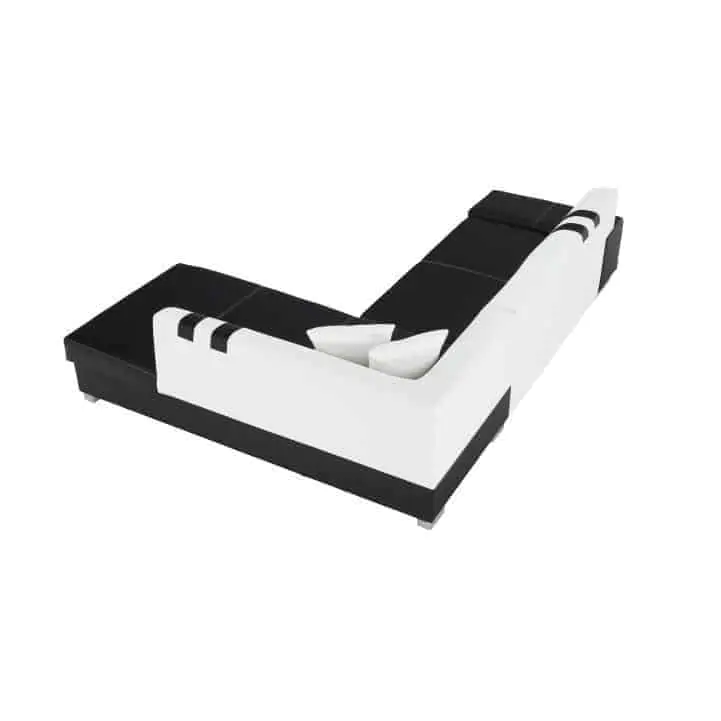 V základním provedení je sedací souprava vyrobena v ekokůži v černo-bílé kombinaci s bílým prošíváním.
