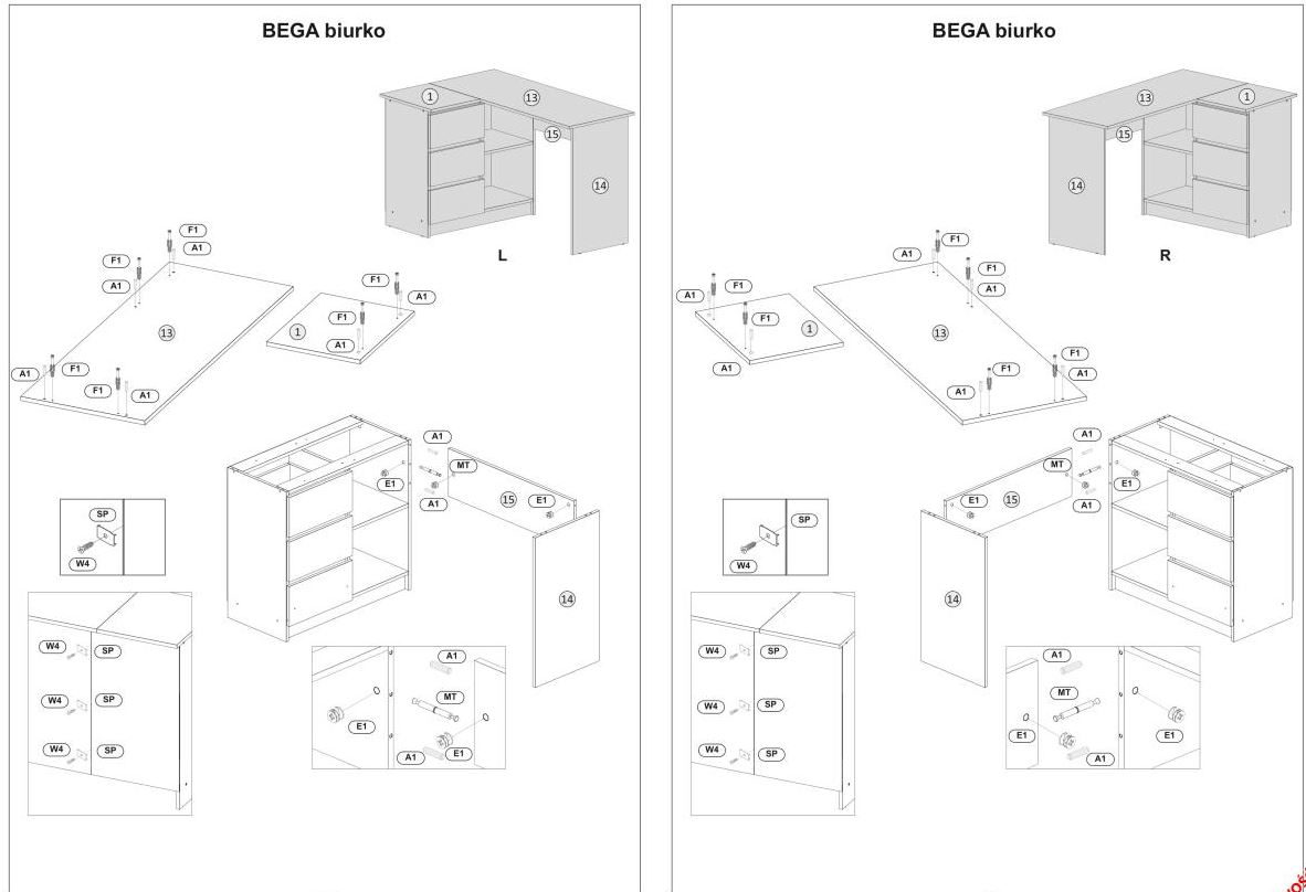 Rohový psací stůl BEGA je vhodný do kanceláře, pracovny nebo studentského pokoje. Díky rohovému provedení šetří místo a zároveň poskytuje velkou pracovní plochu pro počítač, monitor i studijní materiály. Je univerzální – lze jej sestavit jak v levém, tak i v pravém provedení podle potřeb místnosti.