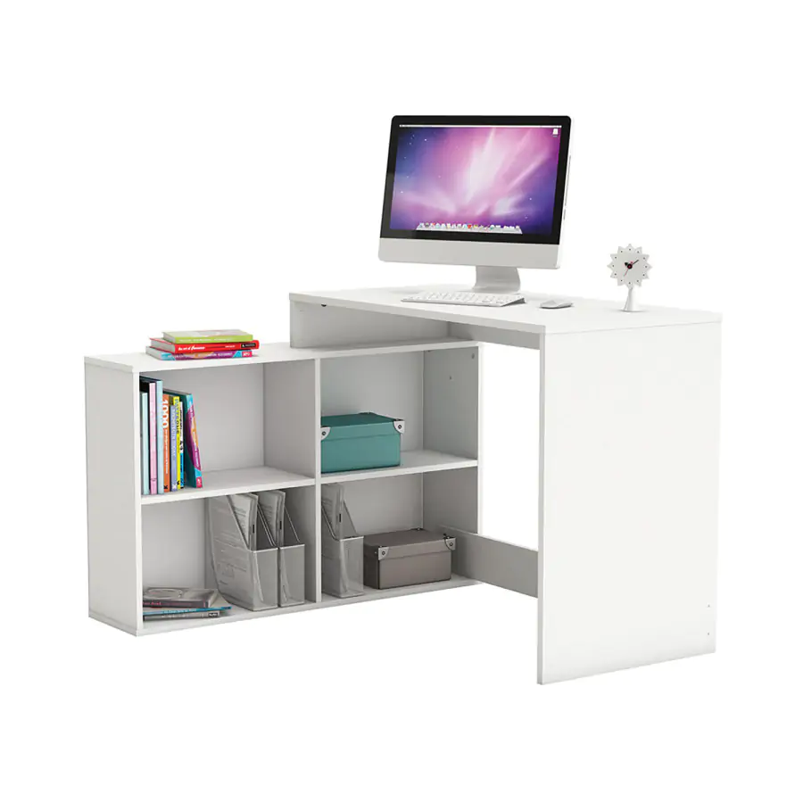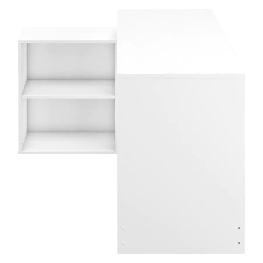 Provedení: Počítačový stůl je vyroben z laminované dřevotřísky v bílé barvě. Tento psací stůl disponuje velkou otevřenou policí, která je rozdělena na čtyři stejně velké části. Rohový počítačový...