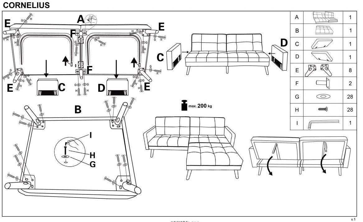 Elegantní rozkládací pohovka Cornelius s podnožkou, což vám umožňuje vytvořit na pohled rohovou sedací soupravu. Taburet lze přemístit, tam kam jej budete potřebovat. Může sloužit k sezení, ale i jako konferenční stolek.