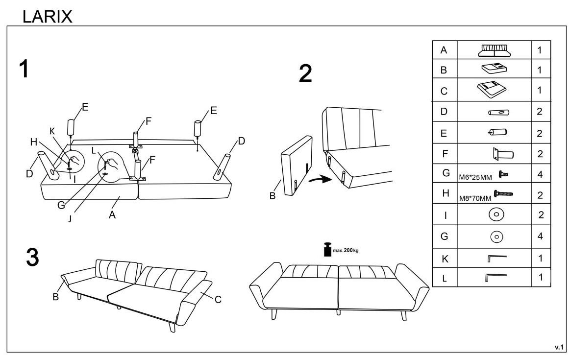 Rozkládací pohovka LARIX , která se stane vaší dominantou nejen v obýváku. rozměry: 200/88-105/81-61 cm s funkcí skládání dvou polovin nezávisle na sobě materiál: látka / masivní dřevo...