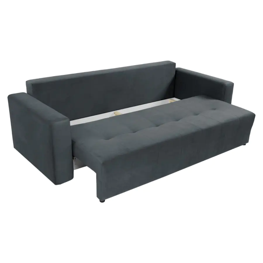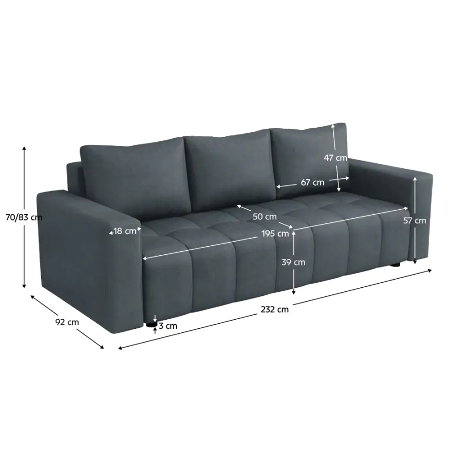 Celočalouněná je látkou Paros v příjemném šedém odstínu. Je rozkládací, takže ji snadno přeměníte na prostorné lůžko ideální pro příležitostné spaní. Kromě toho disponuje praktickým úložným prostorem, který poskytuje dostatek místa na ložní prádlo nebo další doplňky. Výplň sedáku tvoří bonelová pružina pro pohodlné sezení, zatímco opěrky na ruce poskytují maximální komfort při sezení i lenošení.
