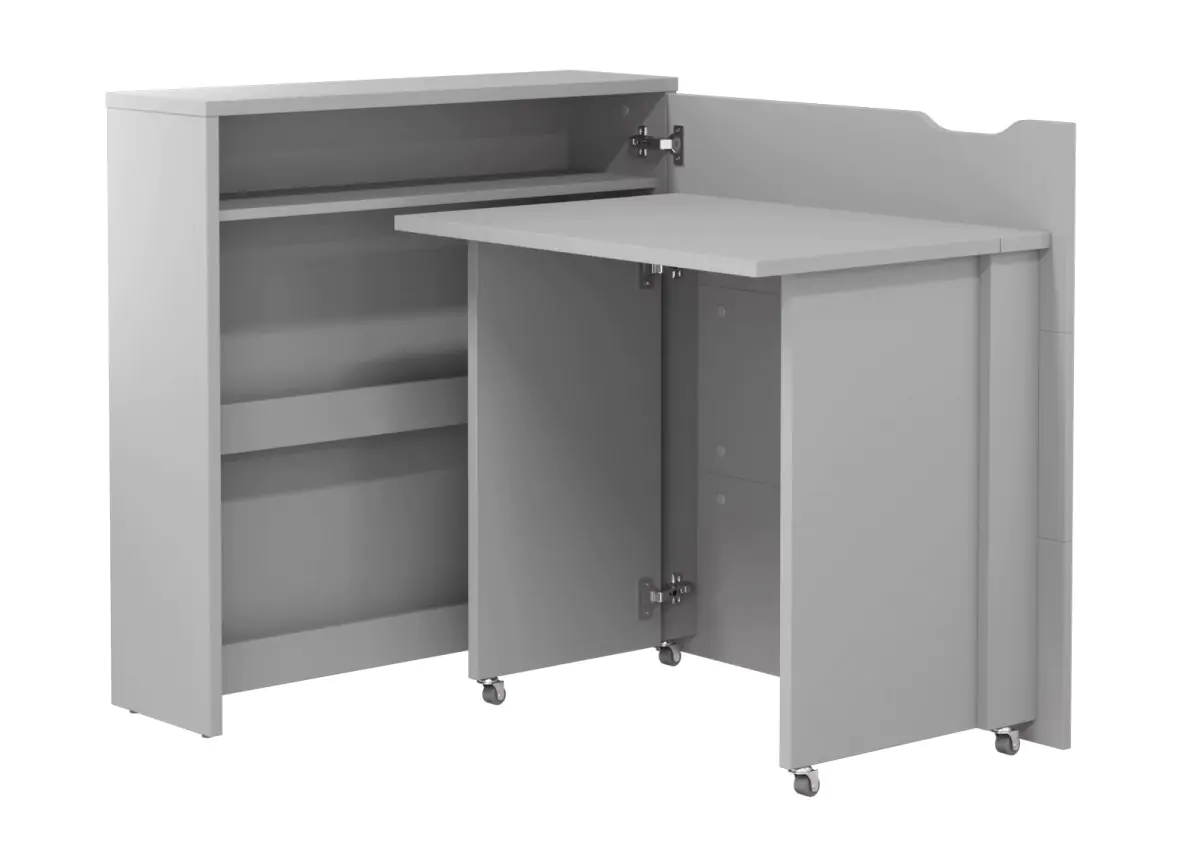 Díky praktickým policím máte vše po ruce. Stůl je k dispozici ve dvou variantách - pravé nebo levé. Vyberte si ten, který lépe vyhovuje Vašim požadavkům. Kolečka umístěná pod bočními podpěrami usnadňují otevírání a zavírání stolu.