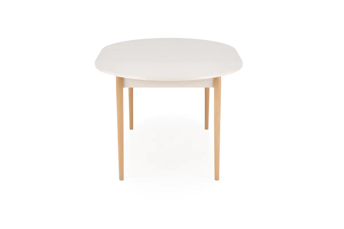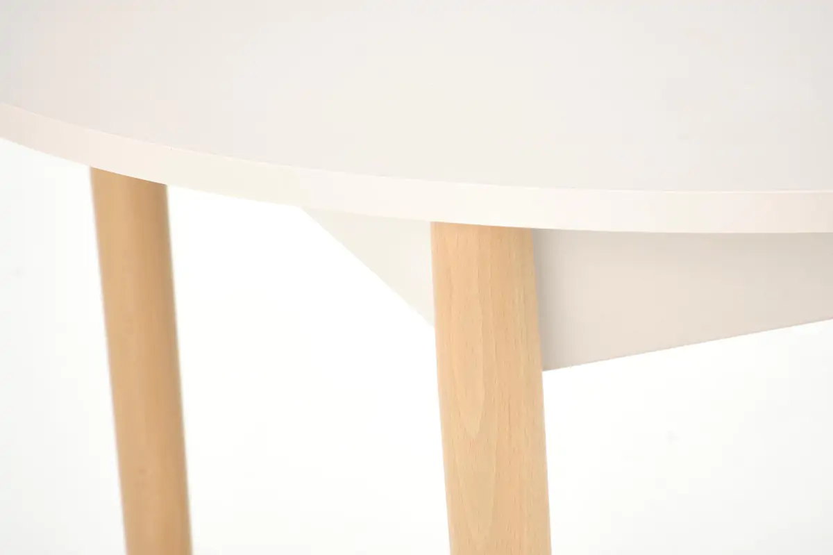 Stůl je vyroben z laminované nábytkové desky a masivního bukového dřeva. Deska stolu v moderní a praktické barvě Kašhmír mu dodává jemný, teplý odstín, který se hodí do každého interiéru, od moderního po klasický.