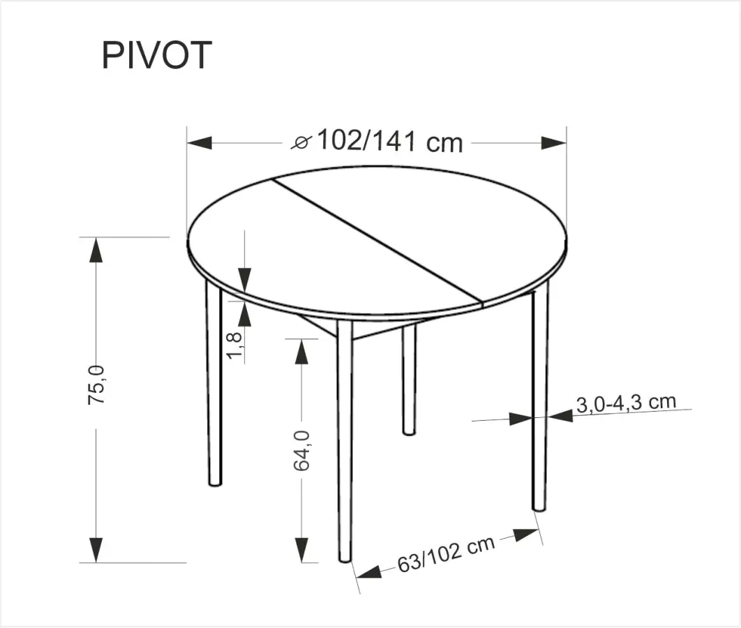 Kulatý a rozkládací stůl PIVOT je elegantní a funkční kus nábytku, který se perfektně hodí do menších i větších prostor. Stůl je vyroben z laminované nábytkové desky a masivního bukového dřeva....