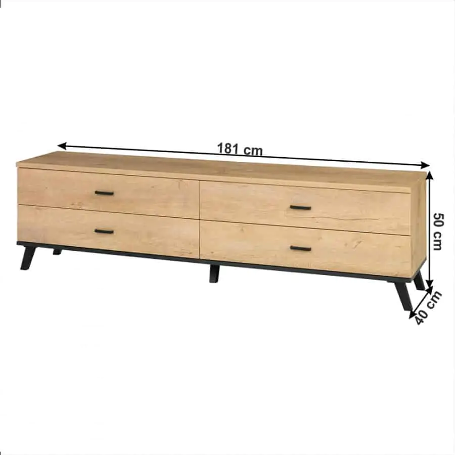 TV stolek moderním stylu v barevném provedení dub lefkas/černá . Nabízí dostatek úložného prostotu ve formě čtyř šuplíků. Je vyroben z laminované dřevotřísky, dvířka s ABS hranami...