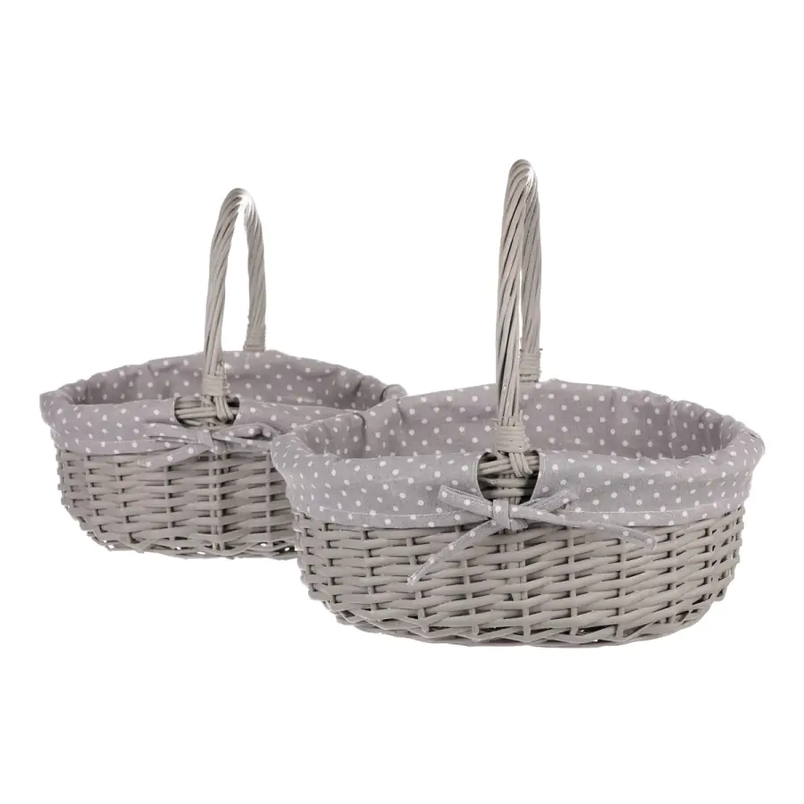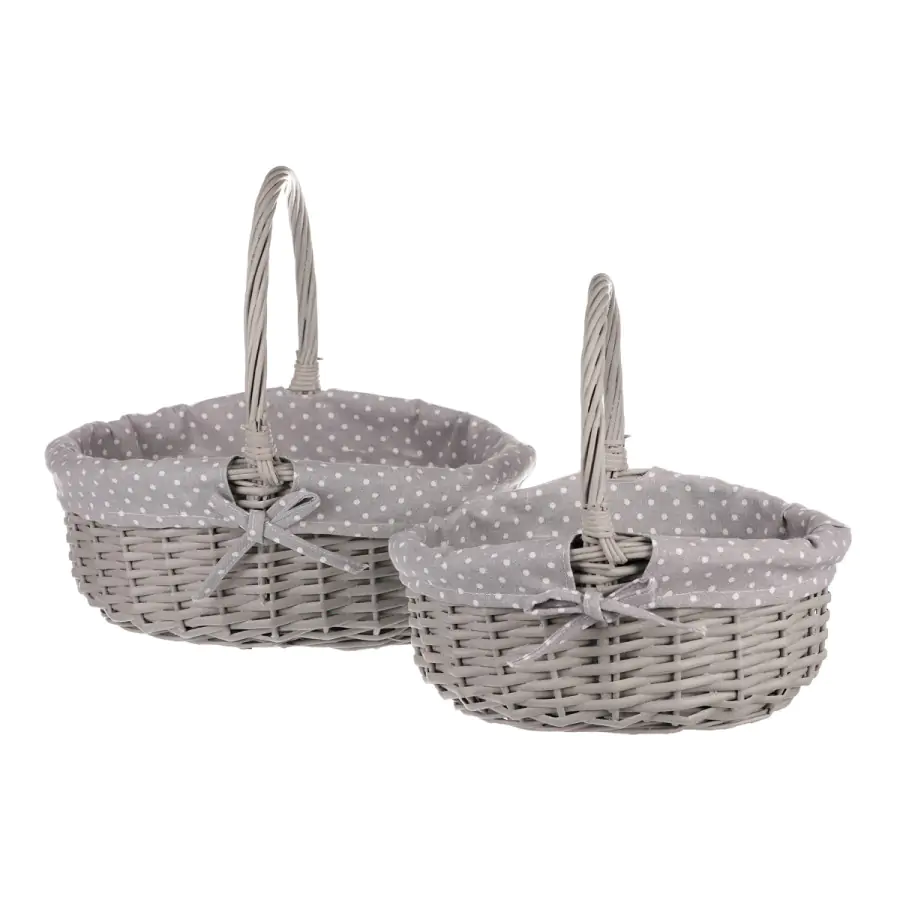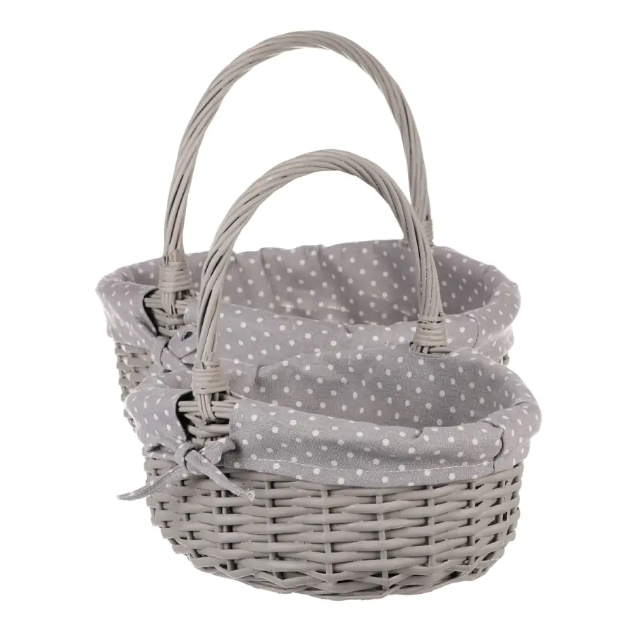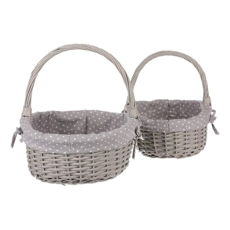 Šedé proutěné košíky PRN2010 GREY s jedním velkým uchem v sadě dvou různě velkých kusů je multifunkční dekorací, která má skutečně široké uplatnění. Svým praktickým designem je skvělým společníkem zejména pro přenášení věcí.
