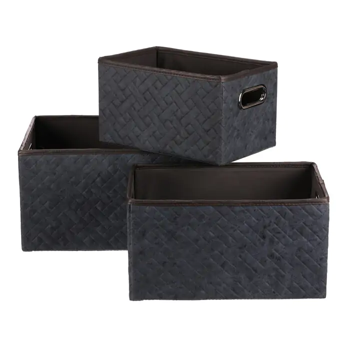 V elegantní modro šedohnědé barvě, s praktickými úchyty po stranách ve tvaru oválných otvorů, se skvěle hodí do regálů, skříní i polic. Různé velikosti umožní systematicky uspořádat drobnosti, oblečení nebo potřeby pro domácnost.