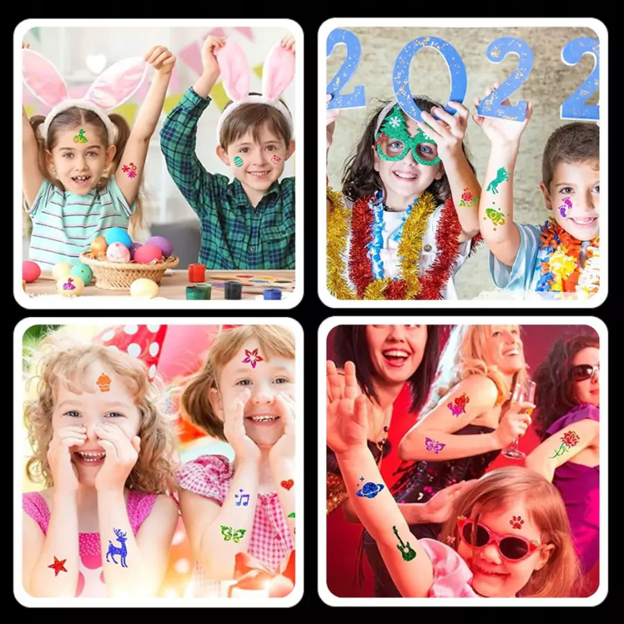 Oživte kouzlo dočasného tetování a třpytivého líčení s naší sadou tetování na tělo, obličej a nehty pro děti. Tato zábavná a bezpečná sada je ideálním doplňkem ke kostýmům a přináší dočasný lesk a kouzlo do každodenního hraní.