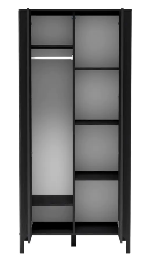 Díky šatní tyčí v jedné polovině a s vnitřními policemi v druhé budete mít ve věcech konečně pořádek. Kvalitní výsuvy (soft close) a panty s tichým dovíráním se postarají o každodenní komfort. Rozměry viz obrázek.