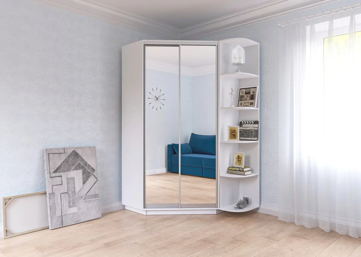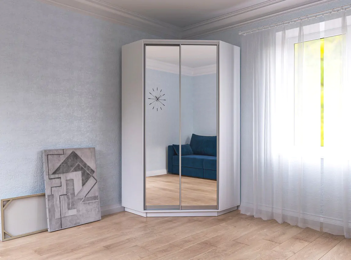 Šatní skříň rohová CORA 110/220 - bílá/zrcadlo