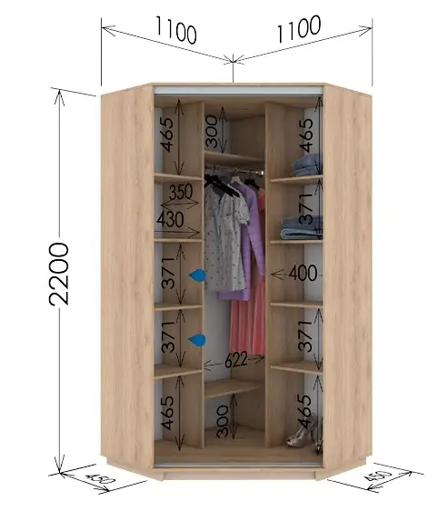 Šatní skříň rohová CORA s posuvnými dveřmi v moderním provedení.