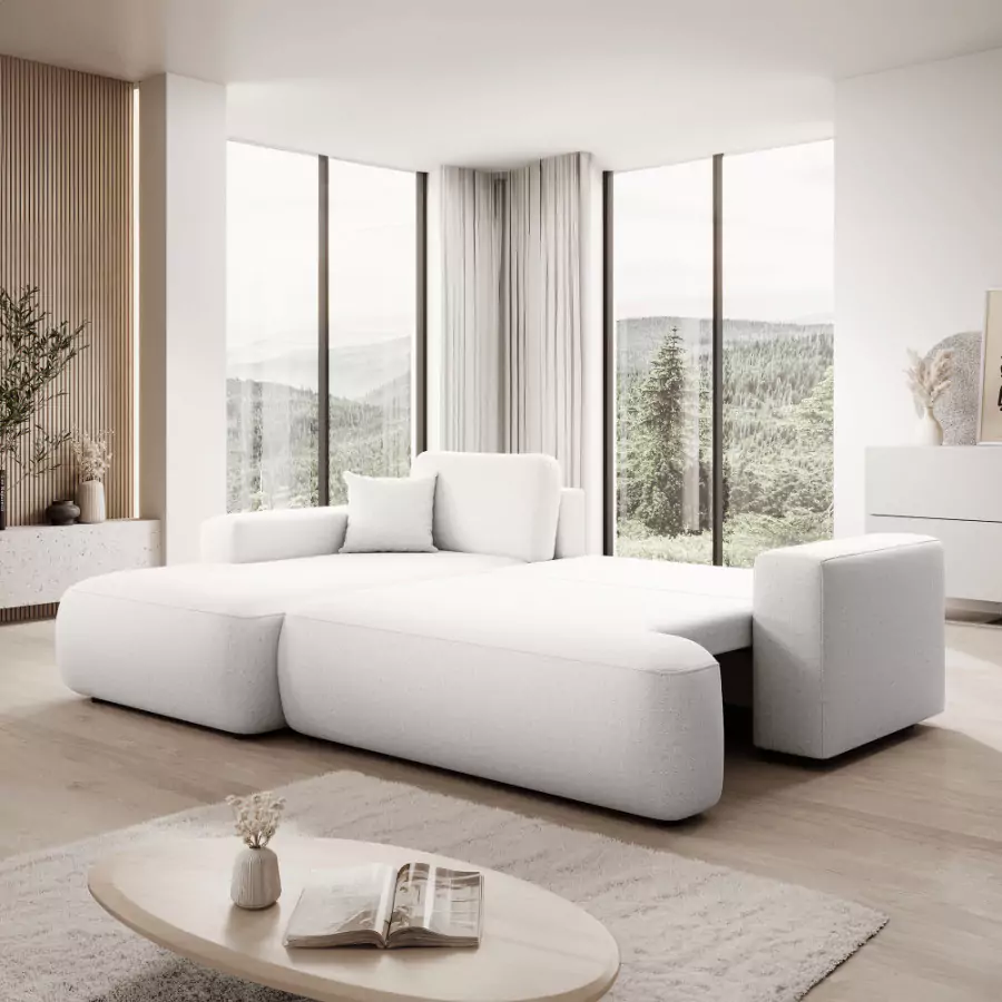 Je to víc než jen sedačka, protože je vhodná jako lůžko pro vaše hosty s plochou na spaní 130x215 cm. Disponuje praktickým úložným prostorem, který využijete k úschově lůžkovin. Vkusnou ji dělá nestárnoucí bílá barva v podání látky Lambi. Výplň sedací soupravy představuje bonelovou pružinu v kombinaci s HR pěnou.