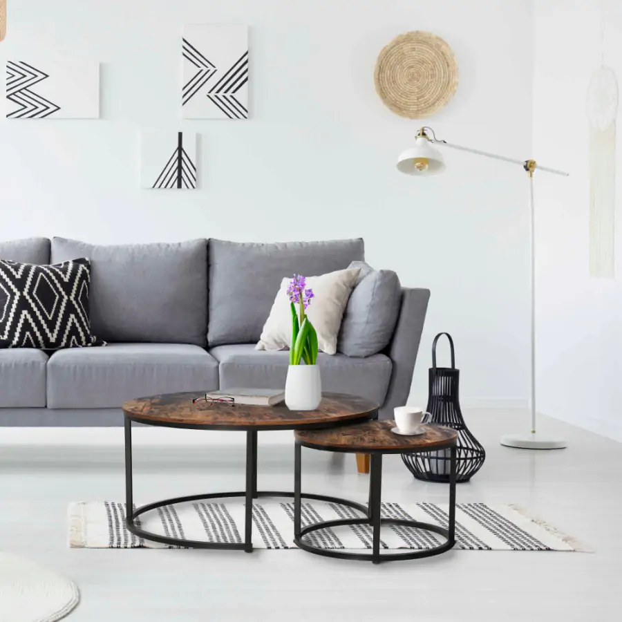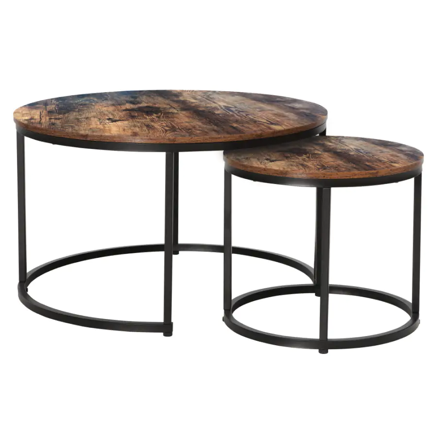 Tento minimalistický a přece designový set konferenčních stolků CIRKO si najde uplatnění v každém interiéru a nabídne dostatek místa i při větší návštěvě. Set se skládá z dvou kulatých stolků. Kombinace černé kovové konstrukce a vrchní desky z DTD laminovaná v dekoru ořech působí moderně a nadčasově.