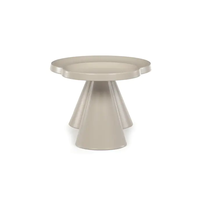 Větší stůl má průměr 68,5 cm a výšku 43,5 cm, menší pak průměr 49 cm a výšku 49,5 cm, což umožňuje variabilní uspořádání v prostoru. Dekorativní hrany desek podtrhují jednoduchý a čistý vzhled, který se hodí do moderních interiérů.