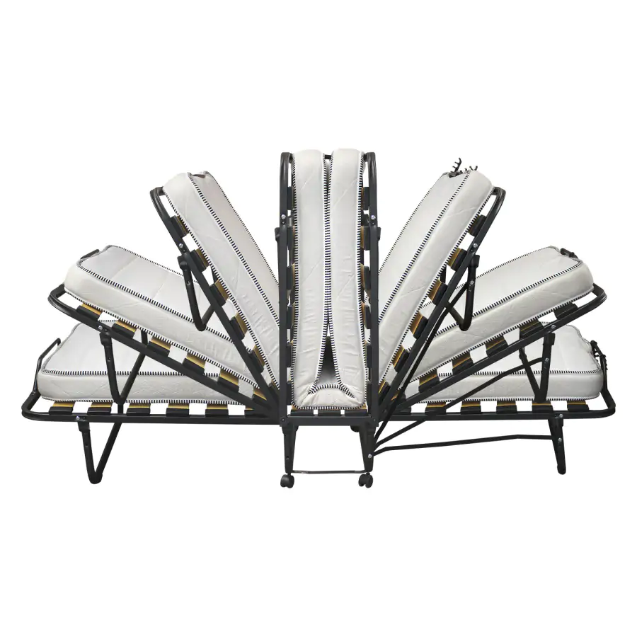 Složená postel je nenáročná na skladovací prostor, výška sedu 38 cm.