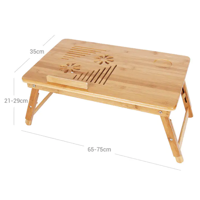 Odkládací stolek na notebook AKF-E1002 NAT z bambusu nabízí praktické a estetické řešení pro práci i odpočinek.
